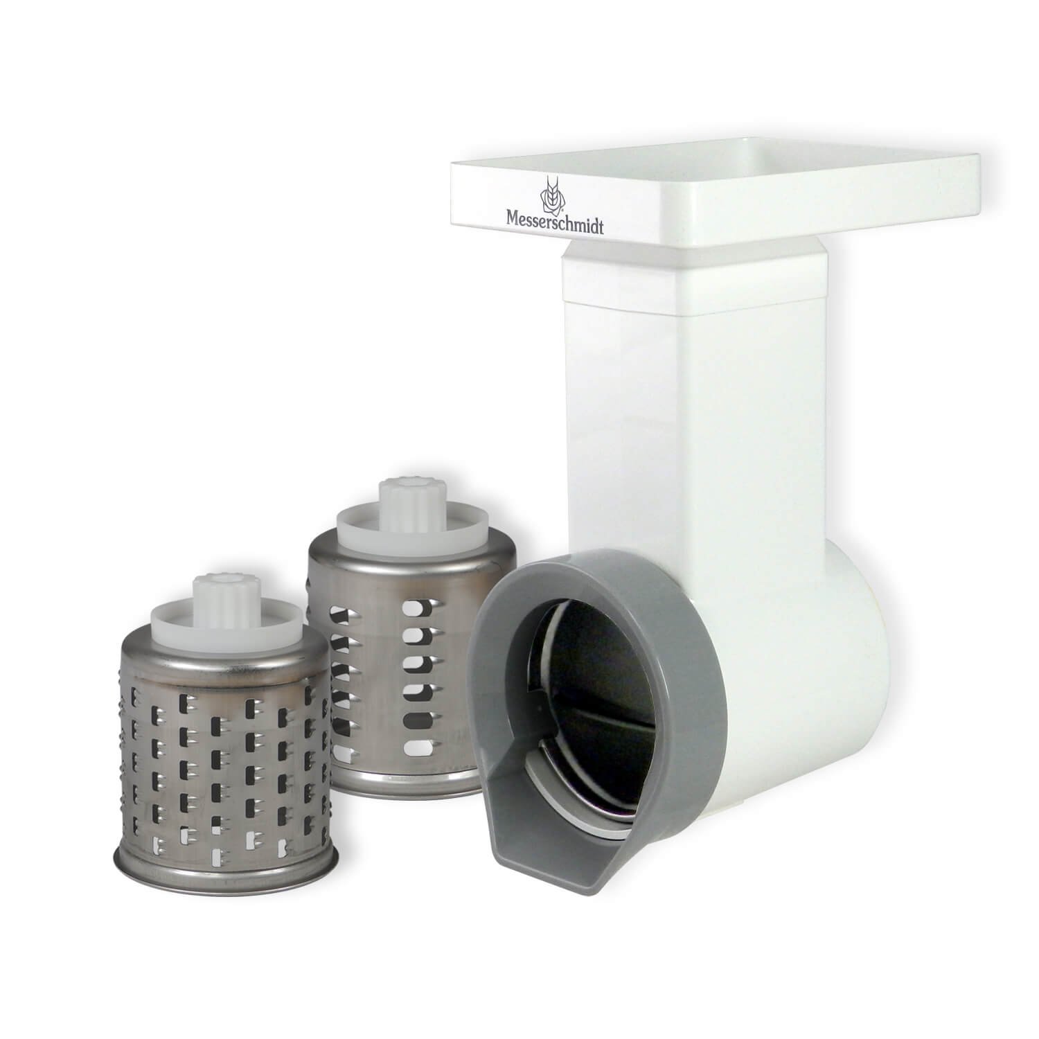 Der Messerschmidt Gemüseschneider ist auch unter den Bezeichnungen Rohkostvorsatz, Gemüseraffel oder Schnitzelwerk bekannt.